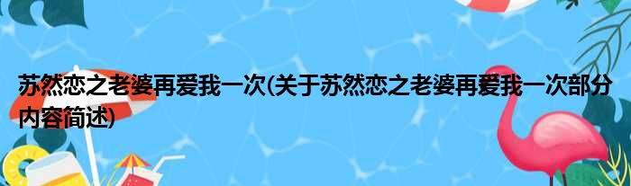 导读 大家好,今天小方来说说一篇关于苏然恋之老婆再爱我一次,关于苏然恋之老婆再爱我一次部分内容简述的文章,那么现在就为大家来简单介绍下,