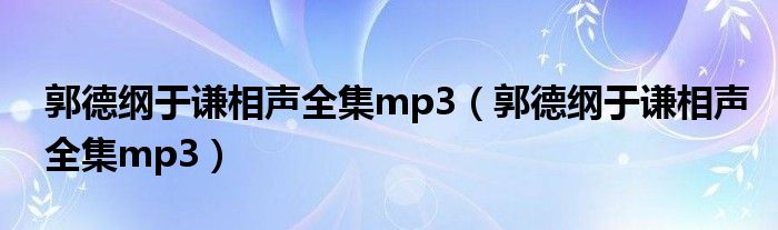 郭德纲于谦相声全集mp3(郭德纲于谦相声全集mp3)