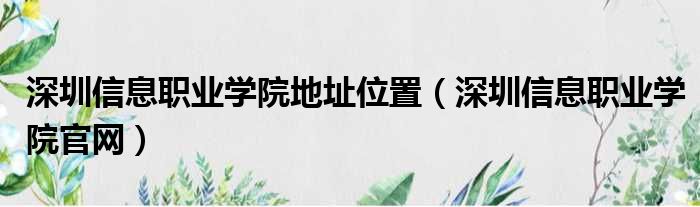 深圳信息职业学院地址位置(深圳信息职业学院官网)