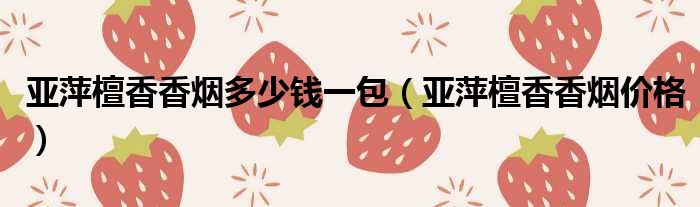 大家好,小活来为大家解答以上的问题。亚萍檀香香烟多少钱一包,亚萍檀香香烟价格这个很多人还不知道,现在让我们一起来看看吧!