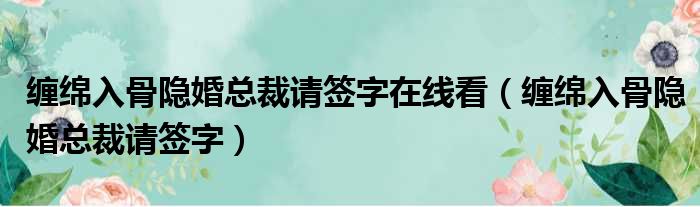 缠绵入骨隐婚总裁请签字在线看(缠绵入骨隐婚总裁请签字)