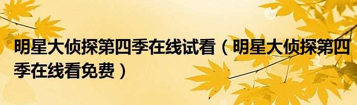 明星大侦探第四季在线试看(明星大侦探第四季在线看免费)