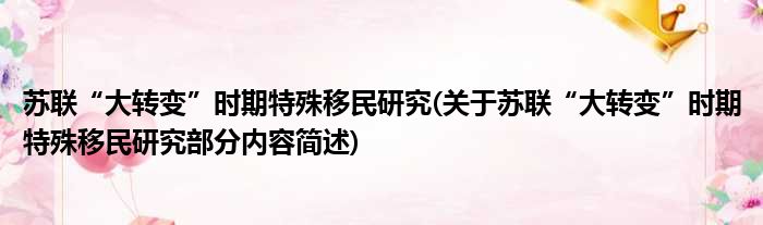 导读 大家好,今天小方来说说一篇关于苏联“大转变”时期特殊移民研究,关于苏联“大转变”时期特殊移民研究部分内容简述的文章,那么现在就为大