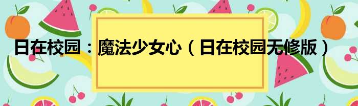 大家好,小活来为大家解答以上的问题。日在校园:魔法少女心,日在校园无修版这个很多人还不知道,现在让我们一起来看看吧!