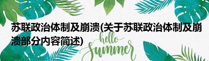 导读 大家好,今天小方来说说一篇关于苏联政治体制及崩溃,关于苏联政治体制及崩溃部分内容简述的文章,那么现在就为大家来简单介绍下,希望对各