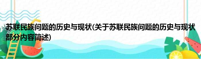 导读 大家好,今天小方来说说一篇关于苏联民族问题的历史与现状,关于苏联民族问题的历史与现状部分内容简述的文章,那么现在就为大家来简单介绍