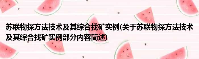 苏联物探方法技术及其综合找矿实例(关于苏联物探方法技术及其综合找矿实例部分内容简述)