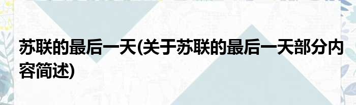 苏联的最后一天(关于苏联的最后一天部分内容简述)