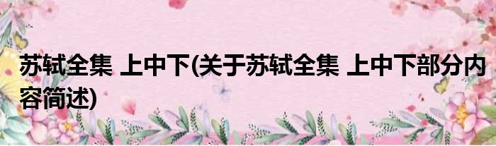 导读 大家好,今天小方来说说一篇关于苏轼全集 上中下,关于苏轼全集 上中下部分内容简述的文章,那么现在就为大家来简单介绍下,希望对各位小