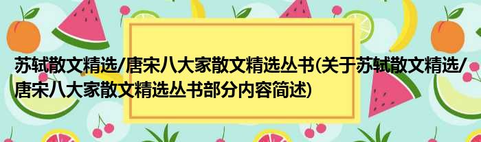 苏轼散文精选/唐宋八大家散文精选丛书(关于苏轼散文精选/唐宋八大家散文精选丛书部分内容简述)