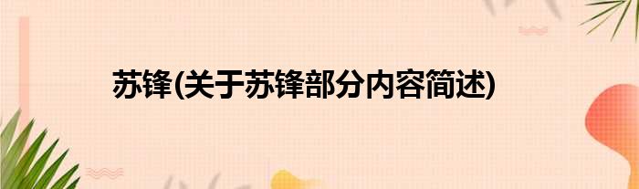 导读 大家好,今天小方来说说一篇关于苏锋,关于苏锋部分内容简述的文章,那么现在就为大家来简单介绍下,希望对各位小伙伴们有所帮助。