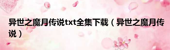 异世之魔月传说txt全集下载(异世之魔月传说)