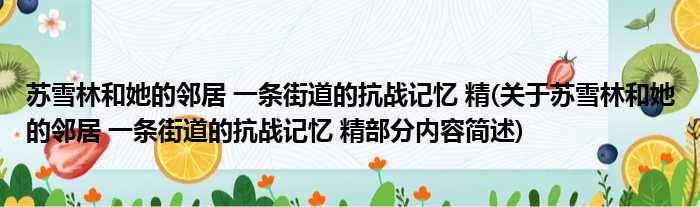 导读 大家好,今天小方来说说一篇关于苏雪林和她的邻居 一条街道的抗战记忆 精,关于苏雪林和她的邻居 一条街道的抗战记忆 精部分内容简述的