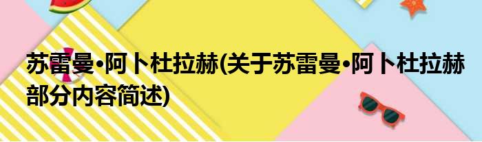 导读 大家好,今天小方来说说一篇关于苏雷曼·阿卜杜拉赫,关于苏雷曼·阿卜杜拉赫部分内容简述的文章,那么现在就为大家来简单介绍下,希望对各