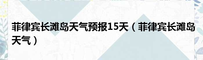 菲律宾长滩岛天气预报15天(菲律宾长滩岛天气)