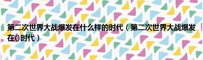 第二次世界大战爆发在什么样的时代(第二次世界大战爆发在()时代)