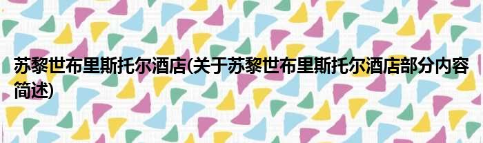 苏黎世布里斯托尔酒店(关于苏黎世布里斯托尔酒店部分内容简述)