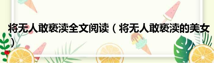 将无人敢亵渎全文阅读(将无人敢亵渎的美女)