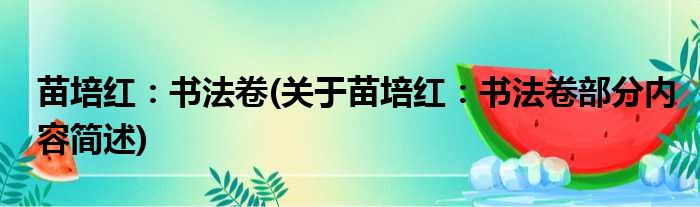 大家好,今天小方来说说一篇关于苗培红:书法卷,关于苗培红:书法卷部分内容简述的文章,那么现在就为大家来简单介绍下,希望对各位小伙伴们有所帮助。