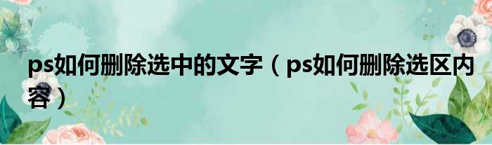 大家好,小活来为大家解答以上的问题。ps如何删除选中的文字,ps如何删除选区内容这个很多人还不知道,现在让我们一起来看看吧!