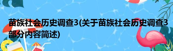 苗族社会历史调查3(关于苗族社会历史调查3部分内容简述)