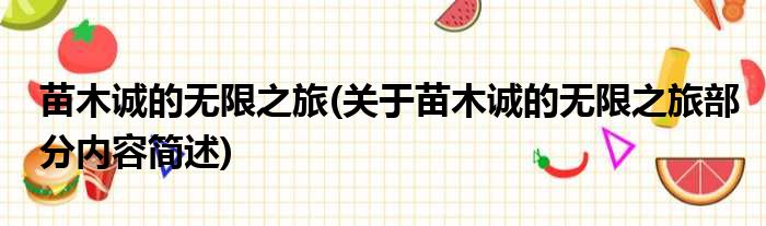 导读 大家好,今天小方来说说一篇关于苗木诚的无限之旅,关于苗木诚的无限之旅部分内容简述的文章,那么现在就为大家来简单介绍下,希望对各位小