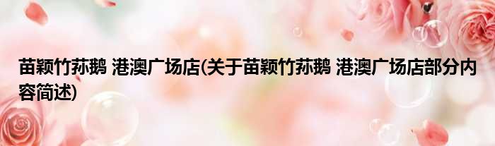 苗颖竹荪鹅 港澳广场店(关于苗颖竹荪鹅 港澳广场店部分内容简述)