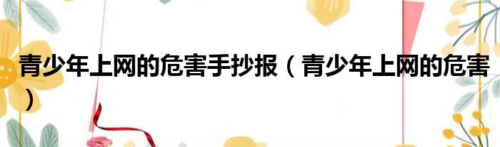大家好,小活来为大家解答以上的问题。青少年上网的危害手抄报,青少年上网的危害这个很多人还不知道,现在让我们一起来看看吧!