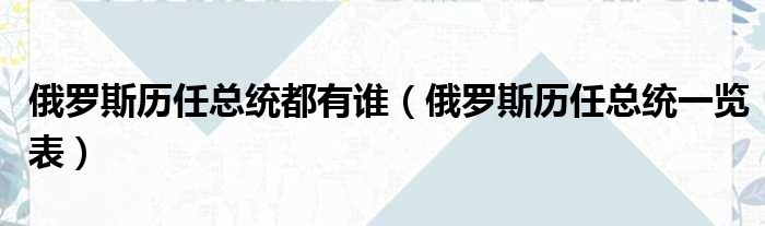 俄罗斯历任总统都有谁(俄罗斯历任总统一览表)