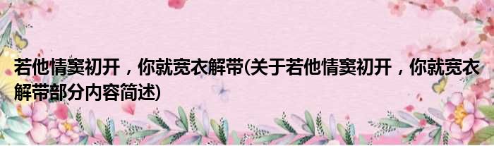 导读 大家好,今天小方来说说一篇关于若他情窦初开,你就宽衣解带,关于若他情窦初开,你就宽衣解带部分内容简述的文章,那么现在就为大家来简单