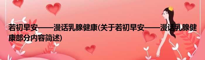 导读 大家好,今天小方来说说一篇关于若初早安——漫话乳腺健康,关于若初早安——漫话乳腺健康部分内容简述的文章,那么现在就为大家来简单介绍