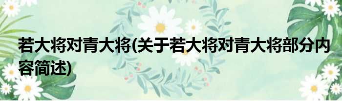 若大将对青大将(关于若大将对青大将部分内容简述)