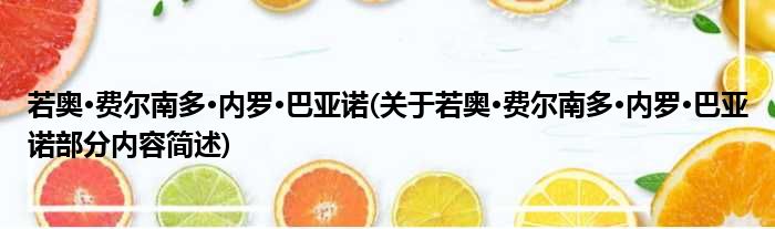 导读 大家好,今天小方来说说一篇关于若奥·费尔南多·内罗·巴亚诺,关于若奥·费尔南多·内罗·巴亚诺部分内容简述的文章,那么现在就为大家来