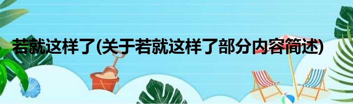 大家好,今天小方来说说一篇关于若就这样了,关于若就这样了部分内容简述的文章,那么现在就为大家来简单介绍下,希望对各位小伙伴们有所帮助。