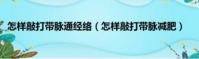 怎样敲打带脉通经络(怎样敲打带脉减肥)