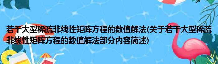 导读 大家好,今天小方来说说一篇关于若干大型稀疏非线性矩阵方程的数值解法,关于若干大型稀疏非线性矩阵方程的数值解法部分内容简述的文章,那