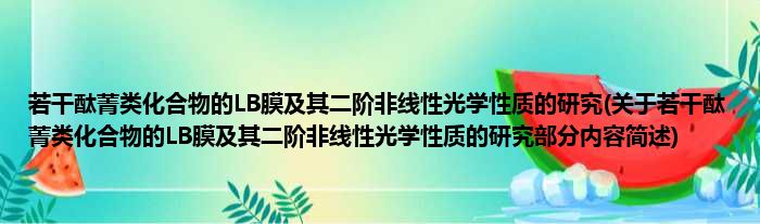若干酞菁类化合物的LB膜及其二阶非线性光学性质的研究(关于若干酞菁类化合物的LB膜及其二阶非线性光学性质的研究部分内容简述)