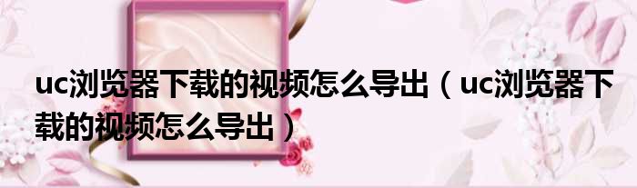 uc浏览器下载的视频怎么导出(uc浏览器下载的视频怎么导出)