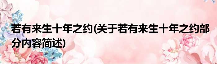 导读 大家好,今天小方来说说一篇关于若有来生十年之约,关于若有来生十年之约部分内容简述的文章,那么现在就为大家来简单介绍下,希望对各位小