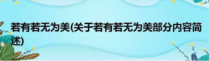若有若无为美(关于若有若无为美部分内容简述)