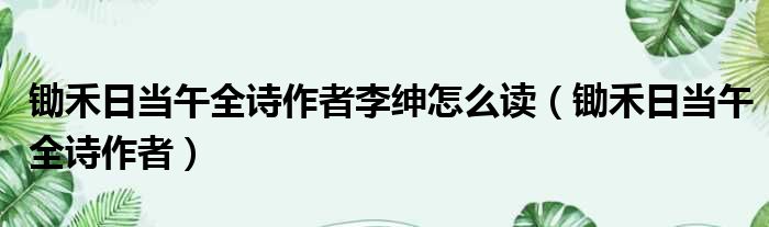 锄禾日当午全诗作者李绅怎么读(锄禾日当午全诗作者)