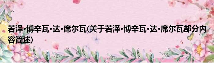 导读 大家好,今天小方来说说一篇关于若泽·博辛瓦·达·席尔瓦,关于若泽·博辛瓦·达·席尔瓦部分内容简述的文章,那么现在就为大家来简单介绍