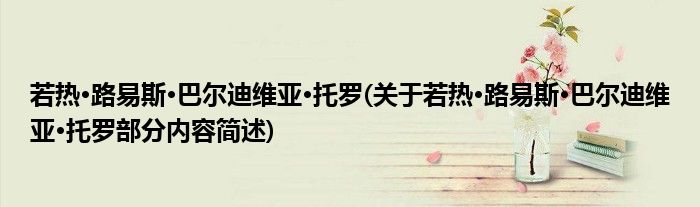 大家好,今天小方来说说一篇关于若热·路易斯·巴尔迪维亚·托罗,关于若热·路易斯·巴尔迪维亚·托罗部分内容简述的文章,那么现在就为大家来简单介绍下,希望对各位小伙伴们有所帮助。