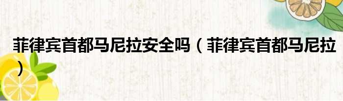 菲律宾首都马尼拉安全吗(菲律宾首都马尼拉)