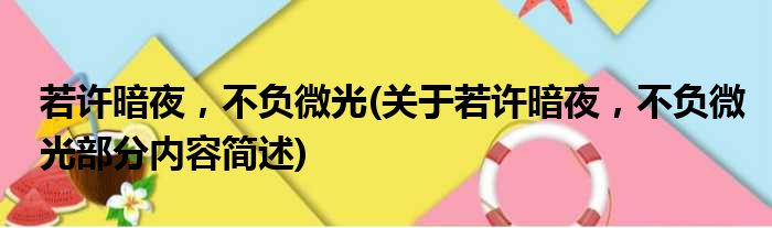 若许暗夜,不负微光(关于若许暗夜,不负微光部分内容简述)