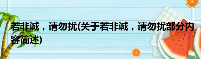 若非诚,请勿扰(关于若非诚,请勿扰部分内容简述)
