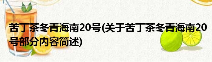 苦丁茶冬青海南20号(关于苦丁茶冬青海南20号部分内容简述)
