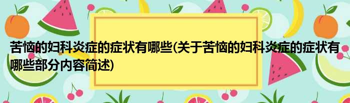 苦恼的妇科炎症的症状有哪些(关于苦恼的妇科炎症的症状有哪些部分内容简述)