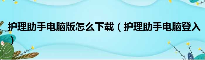 护理助手电脑版怎么下载(护理助手电脑登入)