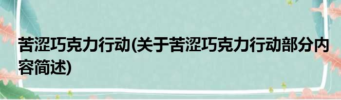 苦涩巧克力行动(关于苦涩巧克力行动部分内容简述)